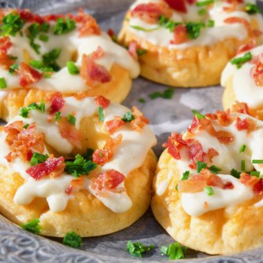 Det är helg och det betyder en lyxig långfrukost här i det Gustafjanska hemmet! 😀 Denna gång åt vi härligt fluffiga äggdonuts med en gudagod ostsås som toppades med baconströssel och gräslök!