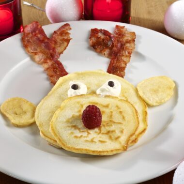 En härlig julfrukost med tomtegröt och en knäckesmörgås med julskinka och hemlagad senap är den bästa julaftonfrukost man kan äta enligt mig 🙂 men så tycker inte alla, därför har jag gjort ett annan alternativ till er, vad sägs om ren-pannkakor 😀