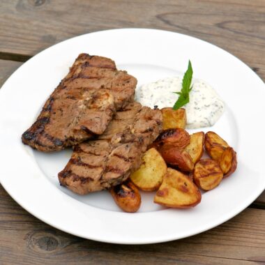 Grillade lammkotletter med myntasås och rostad färskpotatis
