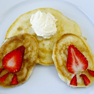 Detta roliga upplägg på amerikanska pannkakor passar alldeles utmärkt att servera under påsken, både barn och vuxna ler när tallrikarna dyker upp på frukostbordet 🙂