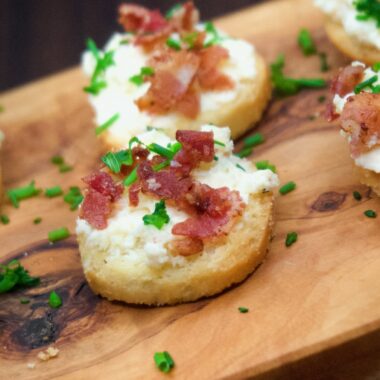 Vad kan gå fel med ost och bacon?! Inget alls om ni frågar mig men självklart måste man gillar dessa två ingredienser. 😀 Dessa crostinisnittar var väldigt goda och passade alldeles utmärkt till drinken Vintrig Old Fashioned.