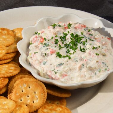 Sommaren är officiellt här från och med idag och helgen är på intågande, solen skall skina men tyvärr skall det vara lite svalt men vad gör väl det om man har något gott i glasen och den här krämiga krabbdipen att tugga på!? 😀