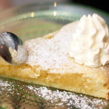 Saffranskladdkaka med ripplad lingongrädde
