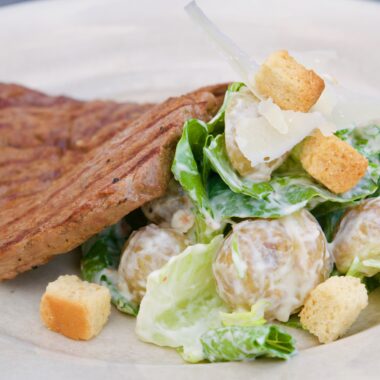 Potatissallad ”Caesar” med grillad bbq-entrecôte