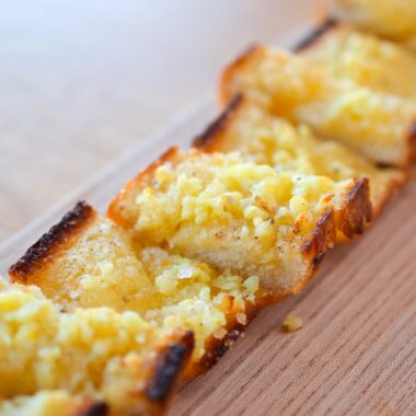 När vi äter skaldjur på det ena eller det andra sättet så brukar vi göra eget vitlöksbröd. Det är så mycket godare och det är busenkelt att göra själv 🙂