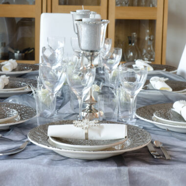 Jag fullkomligt älskar att duka bordet när vi bjuder hem gäster speciellt när det är olika högtider och på nyårsafton såg vårt middagsbord ut så här; Inköpsställen:Duk nr 1, vit krossad velour Stoff & StilDuk nr 2, silvergrå ”tyll” IKEAMinivaser, ljuskoppar IKEALjuslyktor HOME DELUXBlockljus VillageSilvriga tallrikar MateusGlas, Chateau Kosta BodaBestick, […]