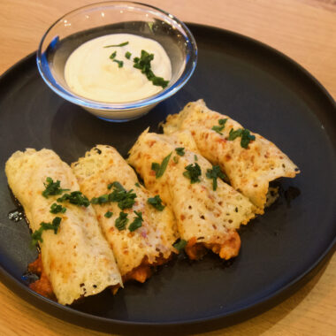 Klassisk taquitos är en mexikansk maträtt som består av en ihoprullad tortillabröd med någon sorts fyllning av t.ex. kyckling, nöt eller ost. Den fyllda tortillan är sedan stekt eller friterad och serveras ofta tillsammans med koriander, gräddfil och guacamole. I detta recept är tortillabröden utbytt mot ”smält ostbröd” och de […]