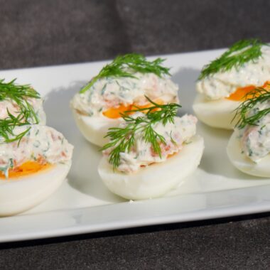 Den ända högtid jag äter ägghalvor på är påsken och så har det varit under hela min uppväxt så jag fortsätt med den traditionen 🙂 Dessa kan jag starkt rekommendera nu när påsken är på intågande! Riktigt, riktigt goda!