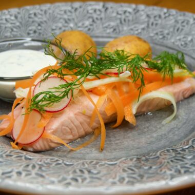 En väldigt enkel laxrätt med en touch av asien vilket jag älskar. Jag är fullkomligt galen i asiatiska smaker! 😀 En intressant och spännande kombination blev det med den kalla citron- och dillsåsen.