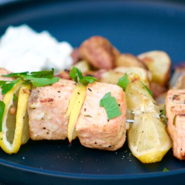 Grillade laxspett med vitlök och dijon