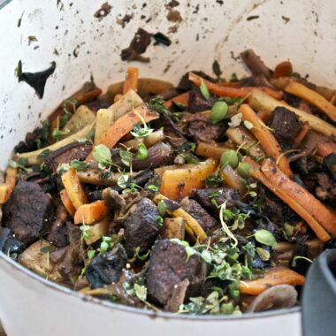 - Skala och hacka löken, hacka även champinjonerna. Efter ca 45 minuter lägger du lök och champinjoner runt kycklingen.