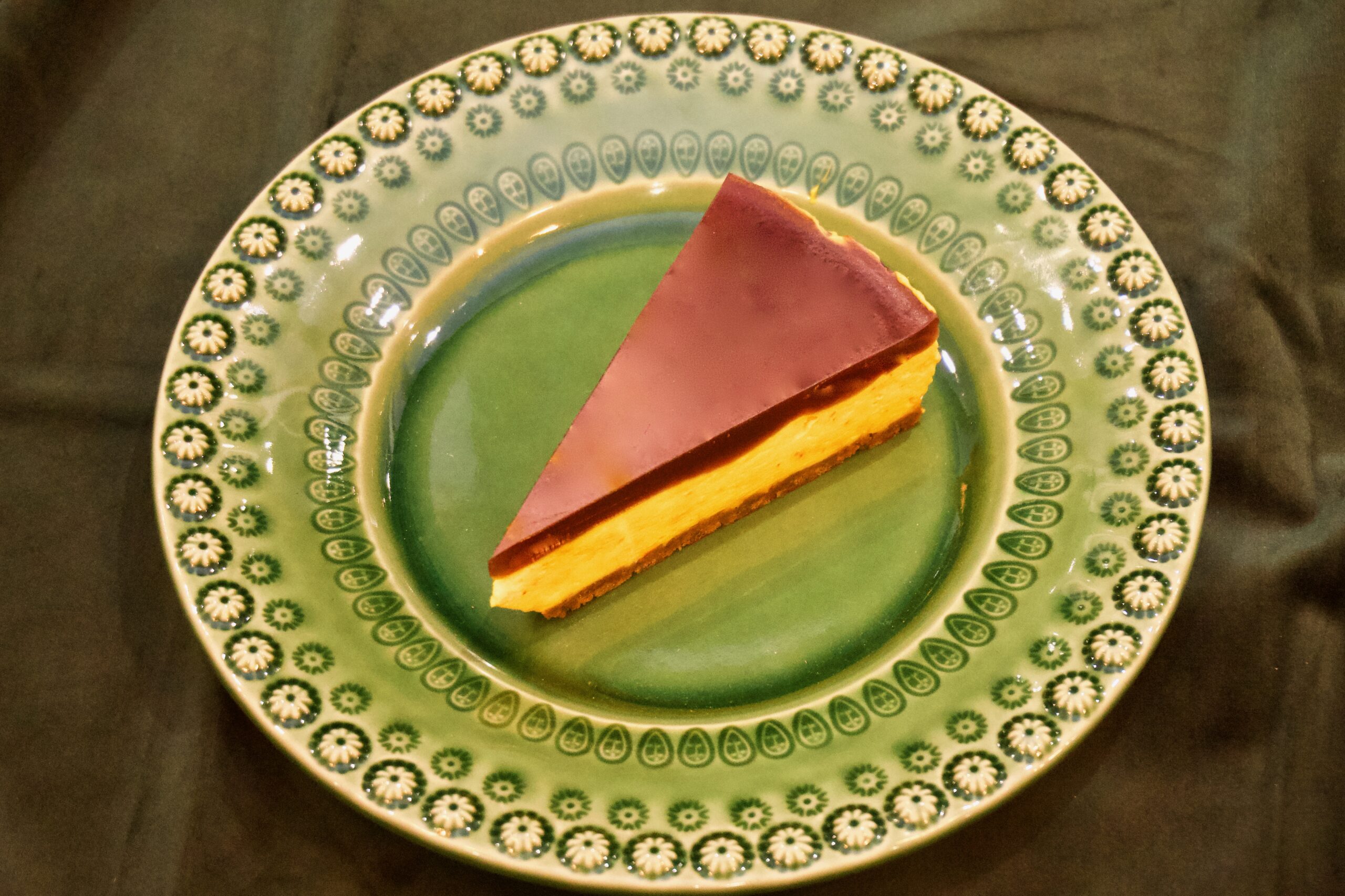 Saffranscheesecake på pepparkaksbotten och med glöggspegel