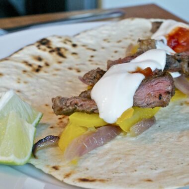 Biff fajitas med hembakat tortillabröd