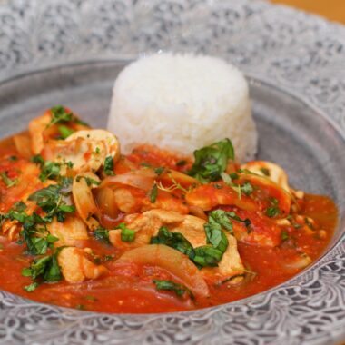 En lätt och väldigt god gryta som går på ett kick att laga till, personligen tycker jag den passar bäst till pasta men jag har även ätit den till ris och det var också riktigt gott!