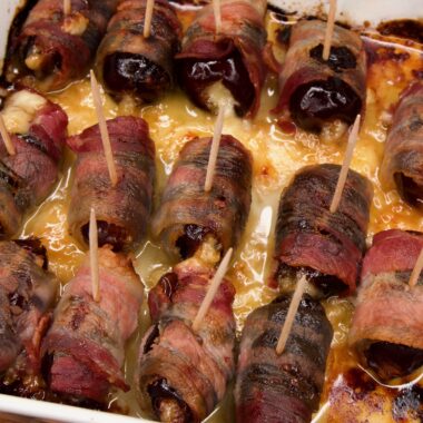 Baconlindade daddlar med cheddarfyllning