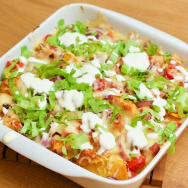 Ugnsgratinerad nachos med bbq-kyckling