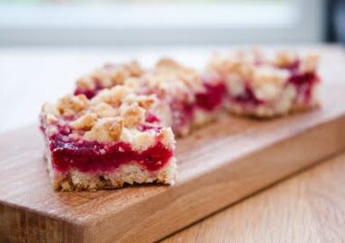 Ett fantastisk gott fikabröd! Det lite syrliga hallonen passsar perfekt till den lite sötare smuldegen.