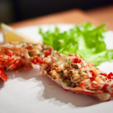Gratinerad hummer med cheddar, tomat, dragon & lök