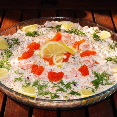 Skaldjur fullkomligt älskar jag och det passar utmärkt till festligare tillfällen, denna förrätt skapade jag i sommras då min svåger med familj firade mig på min födelsedag. Den blev kanongod om jag får säga det själv! 🙂